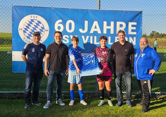 Da in dieser Saison wieder 2 C-Jugendmannschaften gemeldet werden und alle Spieler mit dem entsprechenden SG-Logo „auflaufen“ sollen, ist man dankbar über die Spende eines neuen Trikotsatzes durch die Firma Elektro Bauer Energie Plus aus Buchbach. Bei herrlichem Wetter konnte vor dem ersten Heimspiel gegen die DJK Ast, welches dann auch noch souverän mit 7:2 gewonnen werden konnte, die Trikots durch Niederlassungsleiter Matthias Tafelmeier übergeben werden. Obenstehendes Bild zeigt Spieler (Kapitän Markus Mieslinger und TW Tim Scheungraber) und Sponsoren (Tafelmeier und Mieslinger) zusammen mit der Jugendleitung des TSV Vilslern (Thomas Motzkus und Andreas Vielhuber) stellvertretend für die Spielgemeinschaft.