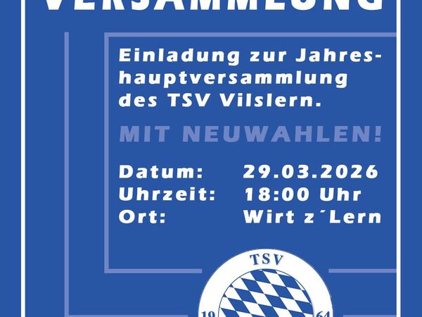Am 29.03. findet im Anschluss an das zweite Saisonspiel der Herrenmannschaft die Jahreshauptversammlung des TSV Vilslern im Gasthaus Putz/Zviedris statt.